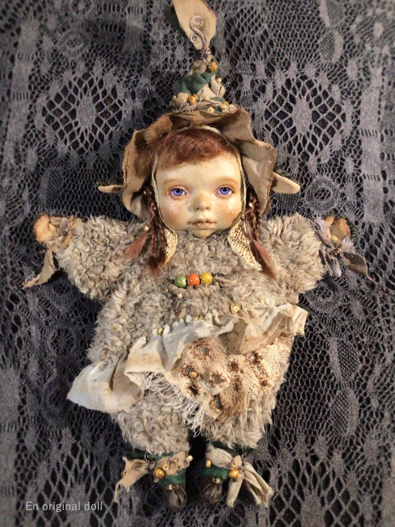 石粉.木粉粘土、麻布、ワイヤー、ビーズ、アクリル絵具他 縦幅約15cm