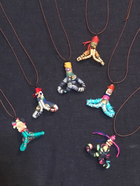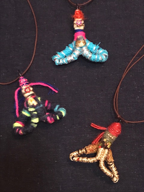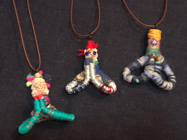 | 609 | 祈り(ブローチ&首飾り) | ワイヤー、はぎれ、毛糸、糸、ビーズ、革紐 | 縦7×横6.5 cm | 6 |