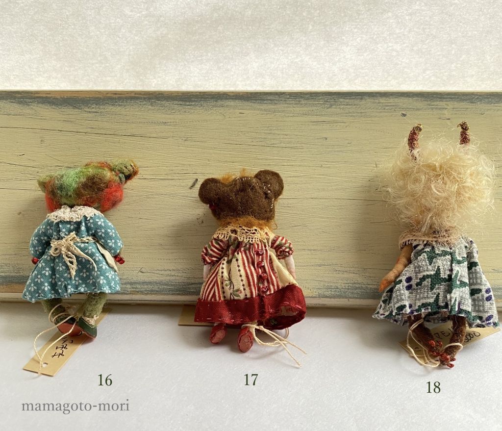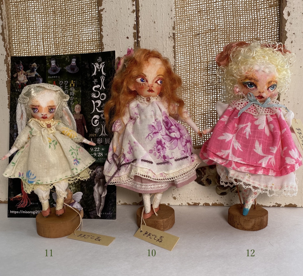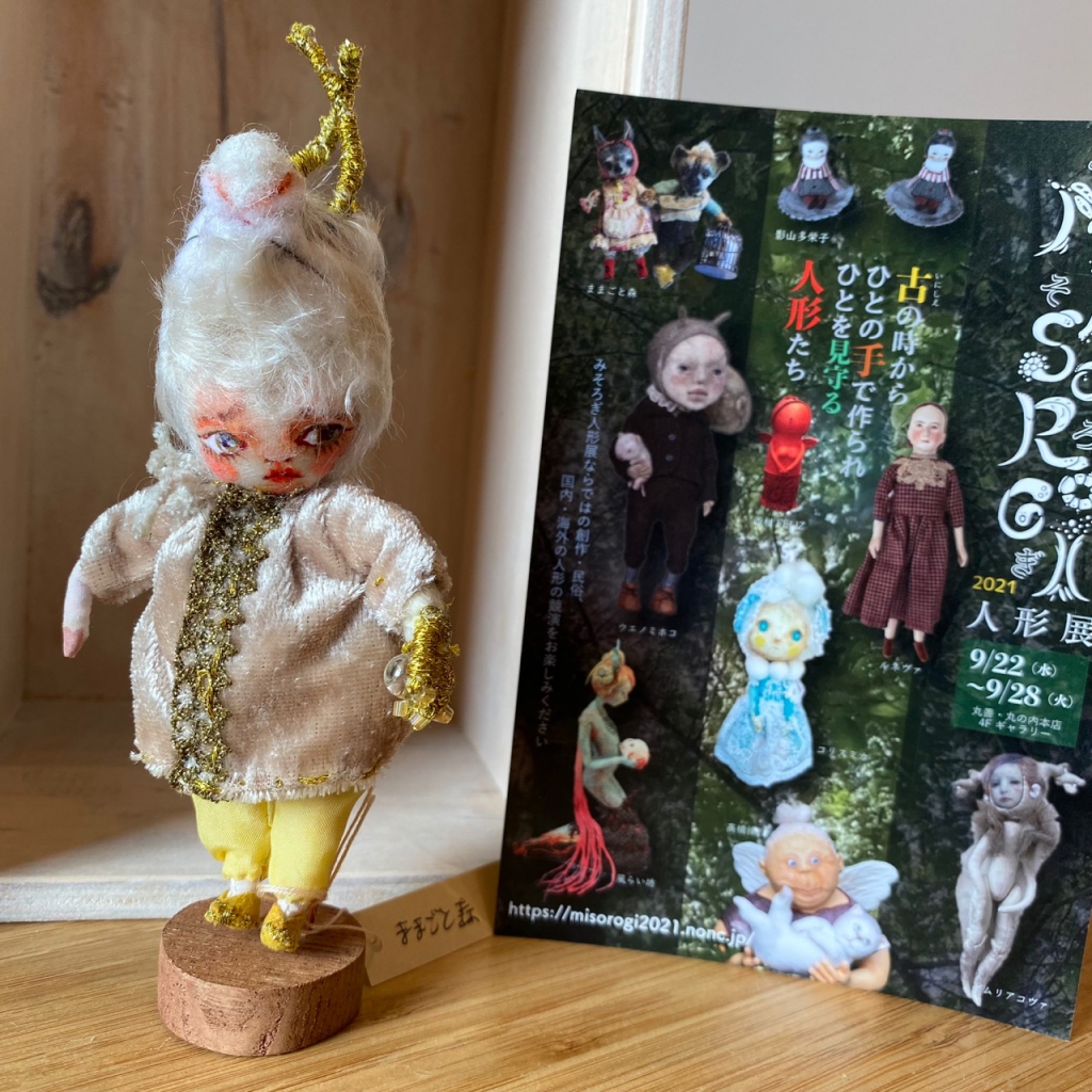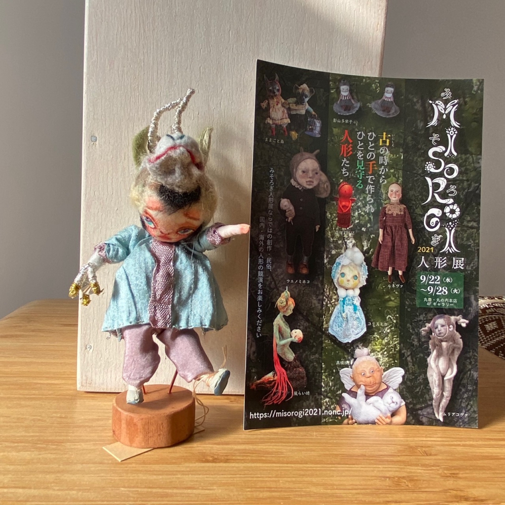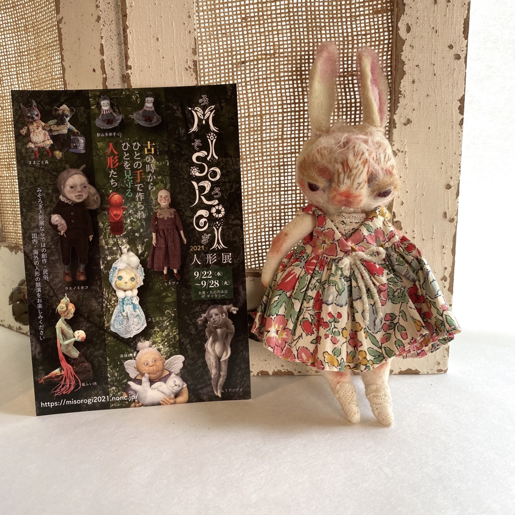 サイズ感の目安のため撮影時MISOROGI人形展のDM葉書(定型サイズ)を置きました。