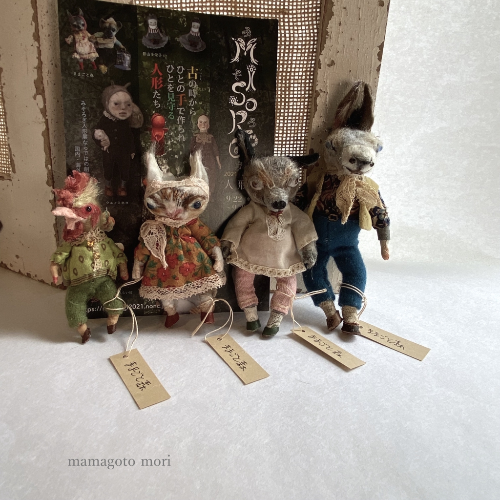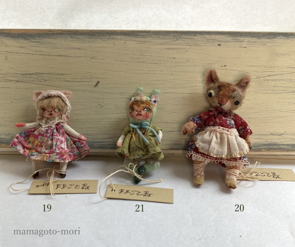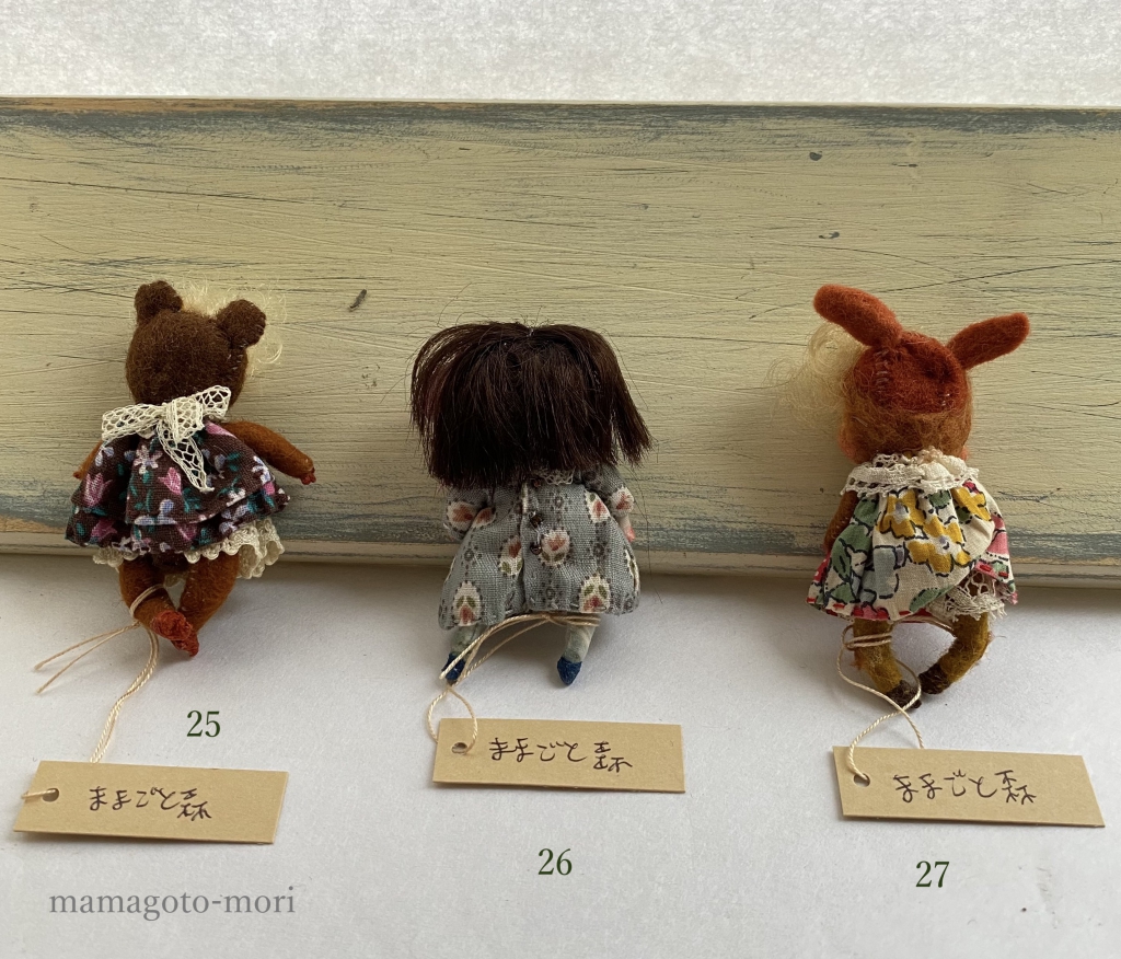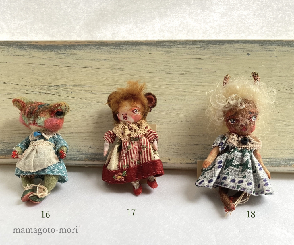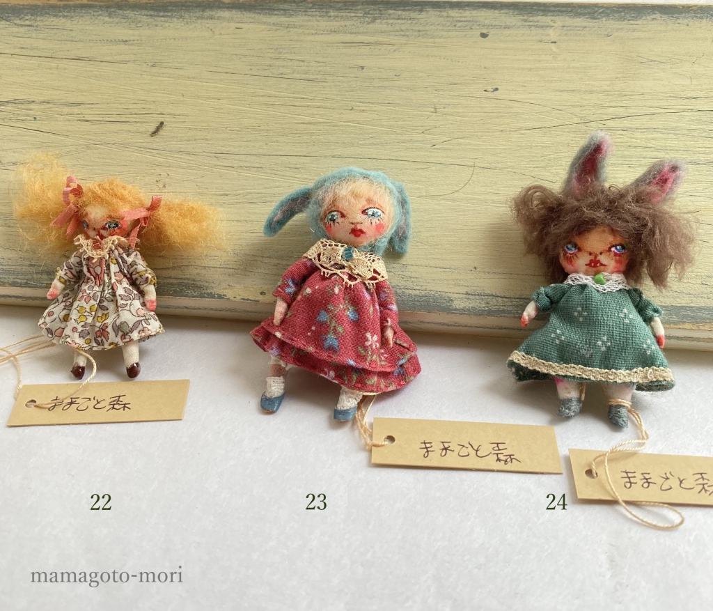 サイズ感の目安のため撮影時MISOROGI人形展のDM葉書(定型サイズ)を置きました。