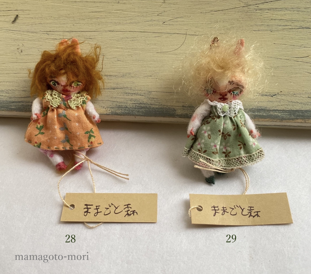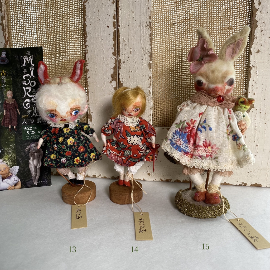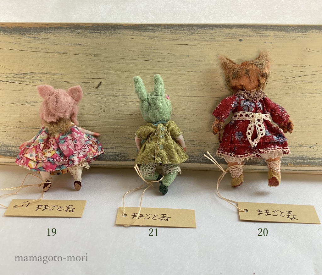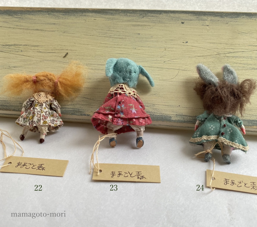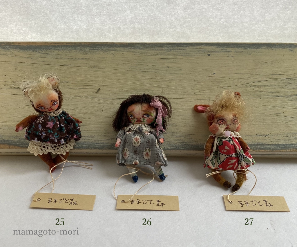 サイズ感の目安のため撮影時MISOROGI人形展のDM葉書(定型サイズ)を置きました。