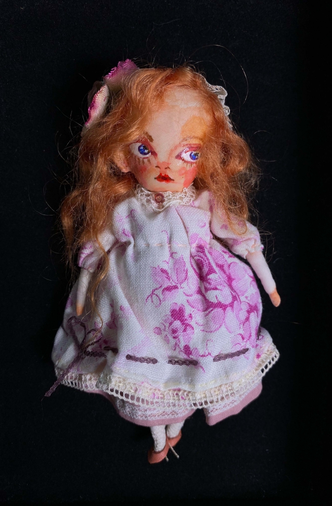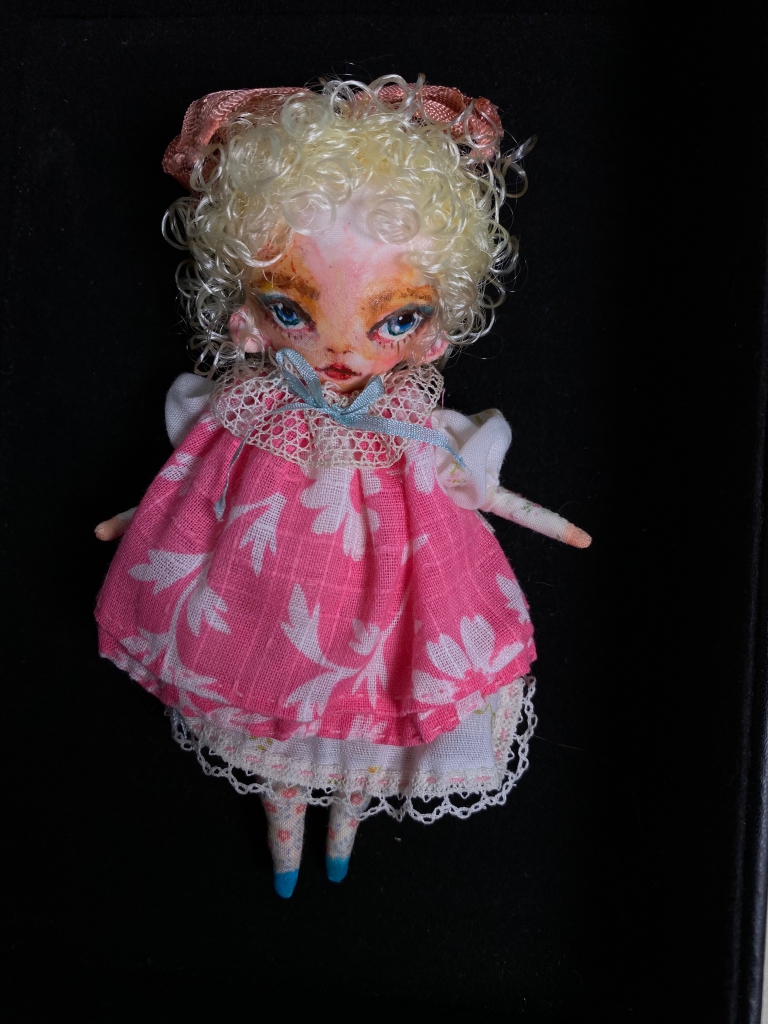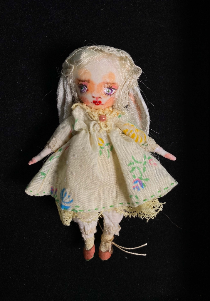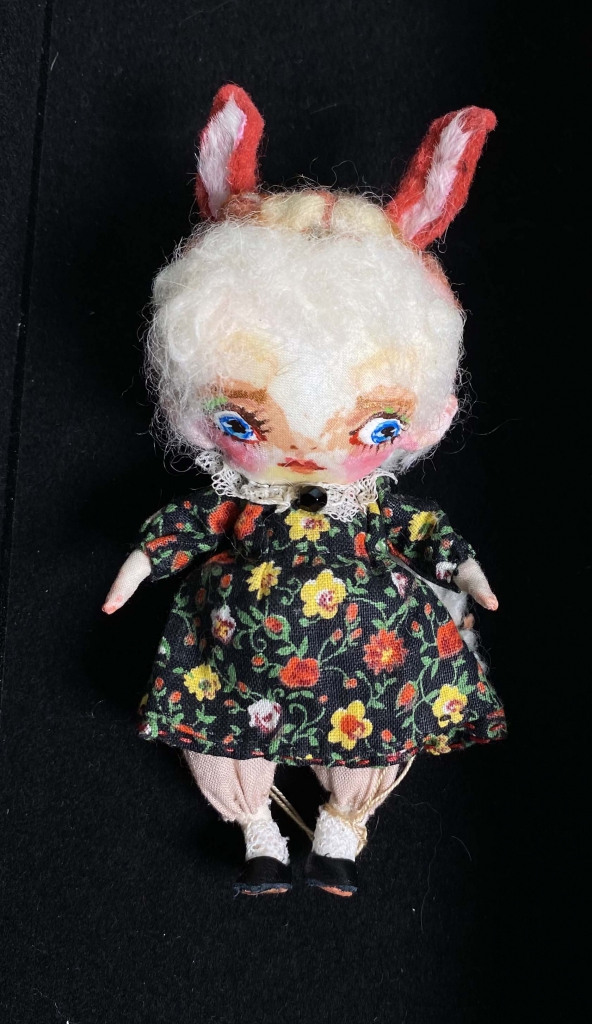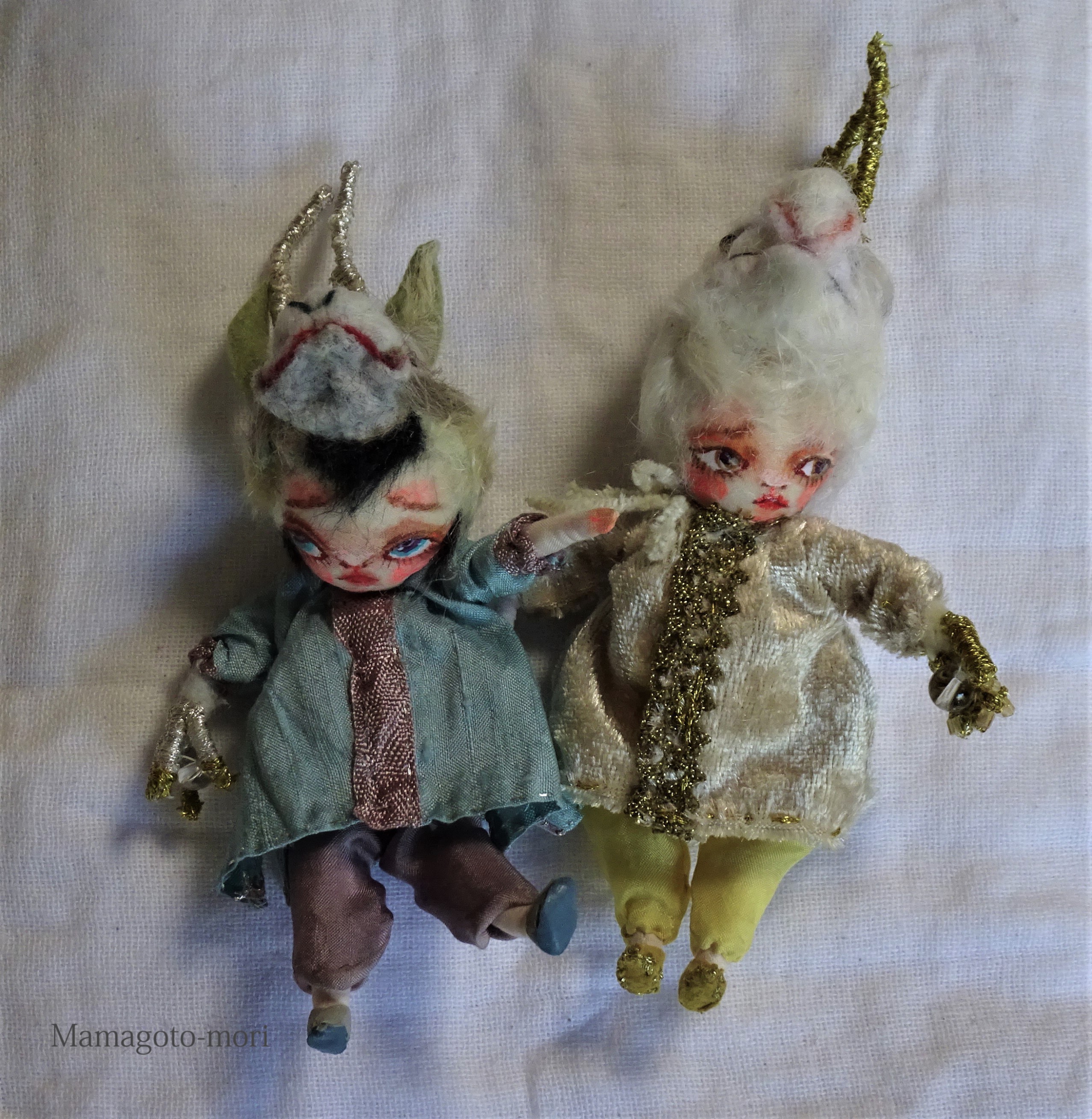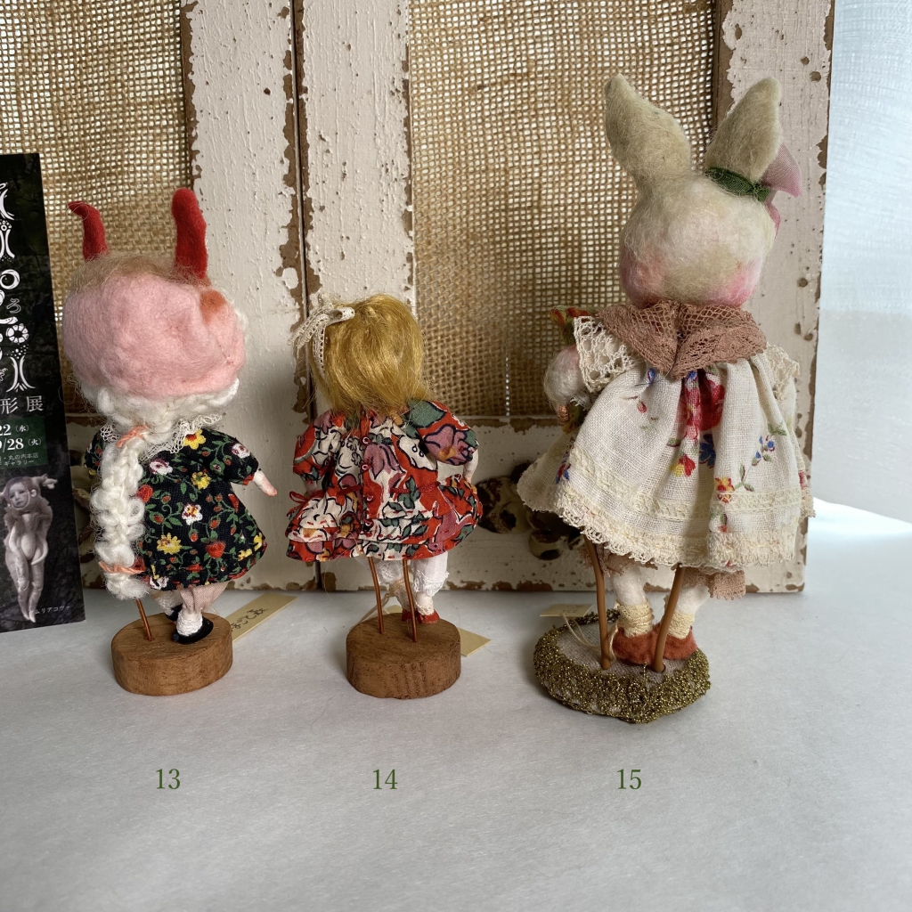 サイズ感の目安のため撮影時MISOROGI人形展のDM葉書(定型サイズ)を置きました。